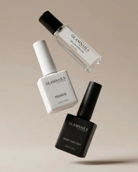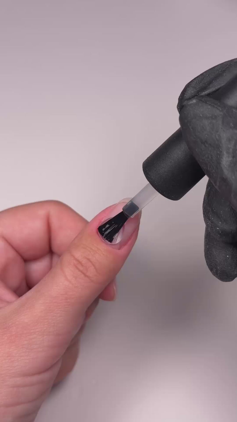 Limez légèrement vos ongles, repoussez vos cuticules et dégraissez pour un départ propre. Appliquez ensuite une fine couche de base et faites durcir sous la lampe LED pour une adhérence maximale.